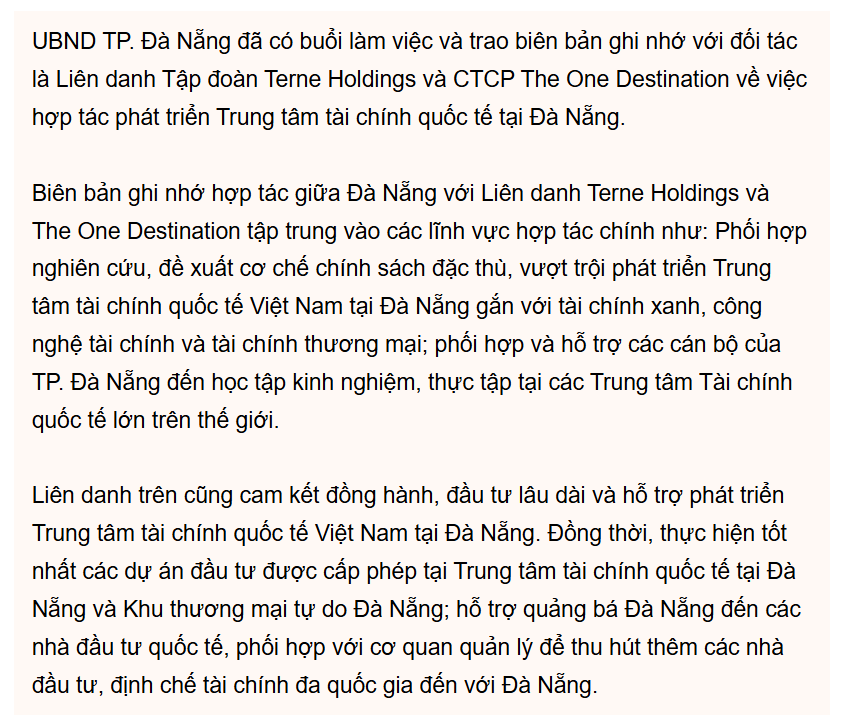 Cụ thể, Trung tâm tài chính quốc tế tại TP. Đà Nẵng sẽ tập trung phát triển các lĩnh vực tài chính xanh, tài chính thương mại phục vụ doanh nghiệp vừa và nhỏ, doanh nghiệp đổi mới sáng tạo, các tổ chức và cá nhân không cư trú (dịch vụ tài chính offshore).