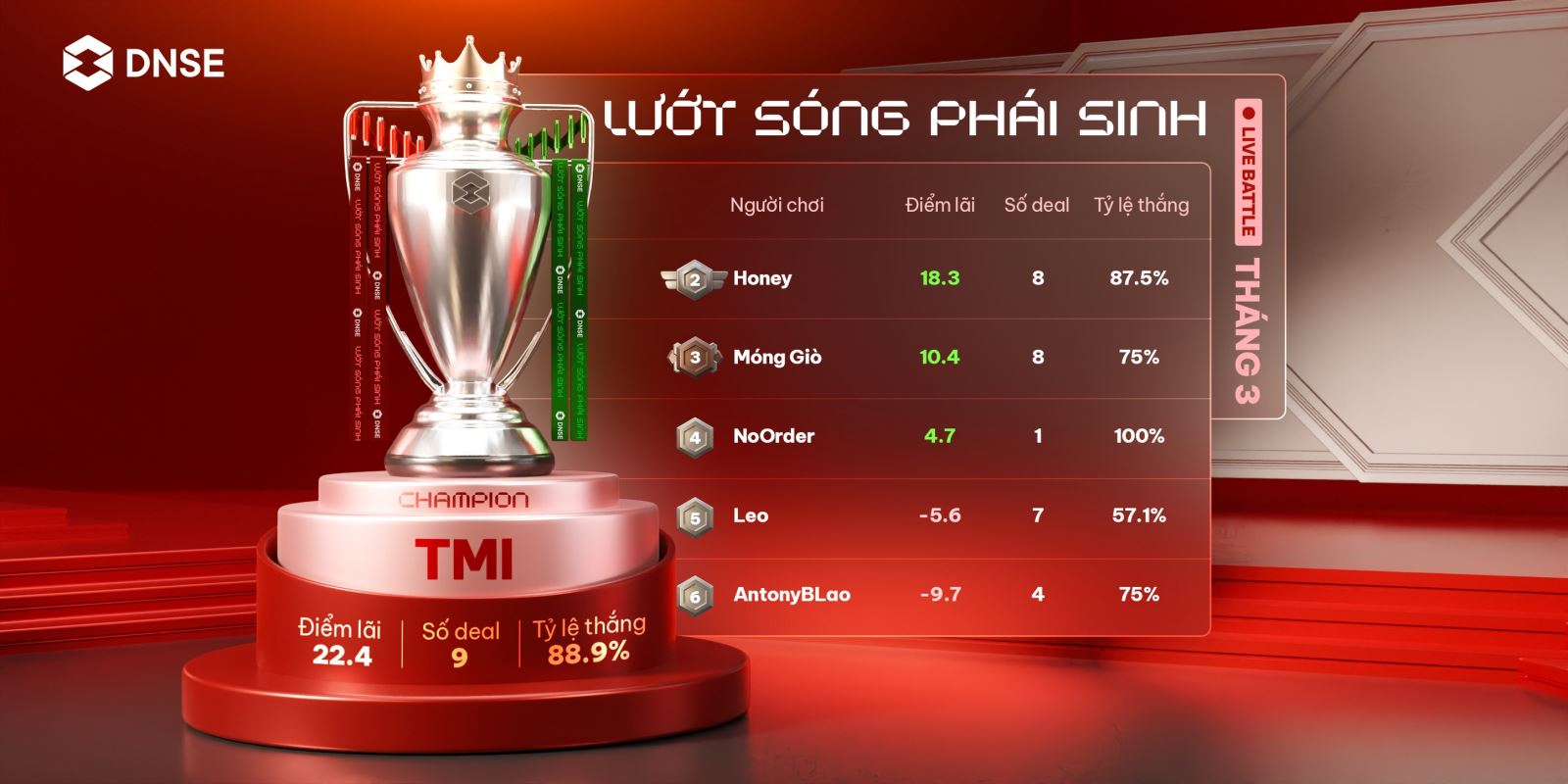 Bảng xếp hạng cuộc thi Live Battle – Lướt sóng phái sinh tháng 3 của DNSE