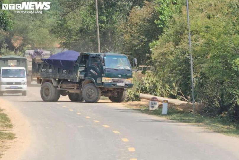 Đất khai thác trái phép được chở đi thi công dự án đường liên xã Lâm Đớt - Đông Sơn (huyện A Lưới). (Ảnh: NV)