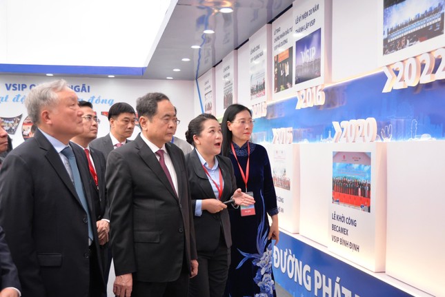 Chủ tịch Quốc hội Trần Thanh Mẫn và Phó Thủ tướng Nguyễn Hòa Bình và các đại biểu nghe giới thiệu về quá trình phát triển của VSIP Quảng Ngãi.