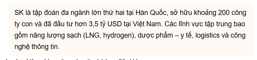 Tập đoàn SK cùng với tỉnh Nghệ An sẽ cùng nhau phát triển Dự án điện khí LNG Quỳnh Lập - Nghi Sơn, bao gồm việc xây dựng một nhà máy điện công suất 1,5GW và một kho LNG tại Quỳnh Lập.