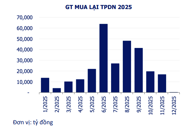 Lũy kế từ đầu năm đến nay, giá trị mua lại trước hạn đạt 273.809 tỷ đồng, tăng 50,6% so với cùng kỳ năm 2024. Nhóm ngân hàng vẫn đóng vai trò chủ đạo khi chiếm khoảng 68,1% tổng giá trị mua lại, tương đương 186.585 tỷ đồng.