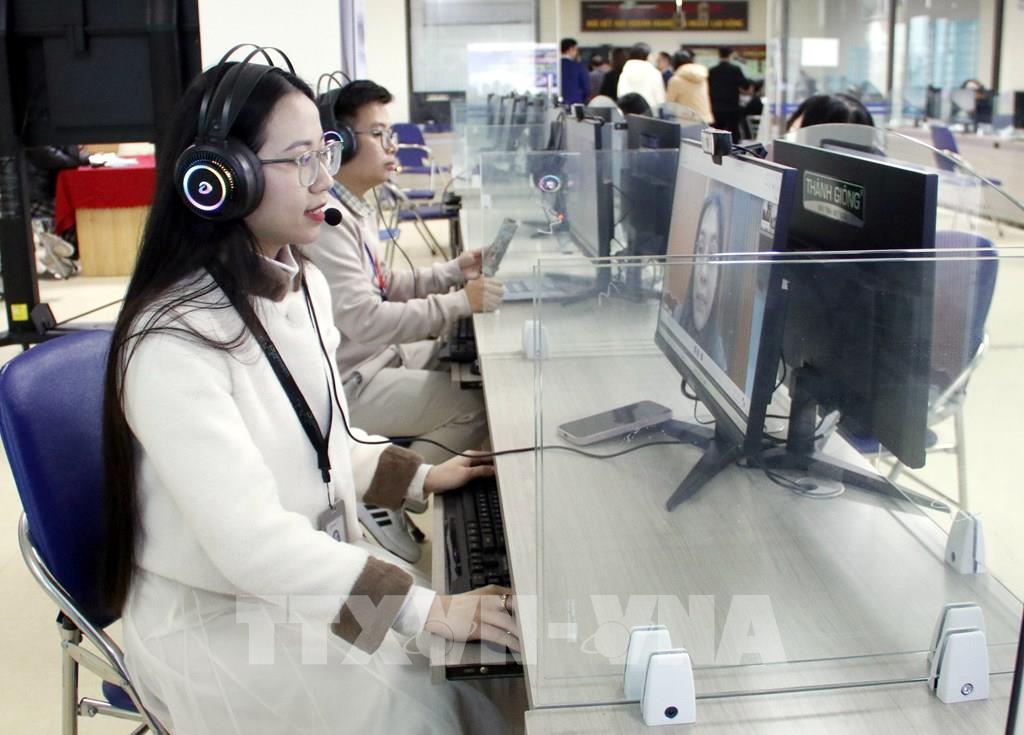 Nhân viên tuyển dụng Công ty TNHH Luxshare ICT Việt Nam (thị xã Việt Yên, tỉnh Bắc Giang) phỏng vấn lao động online. Ảnh: Đồng Thúy - TTXVN