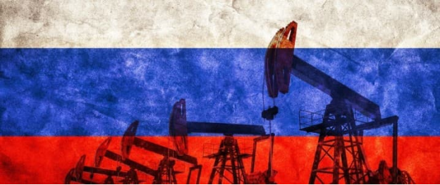 Hình minh họa dàn khoan dầu trên nền cờ Nga. Ảnh: Oil Price