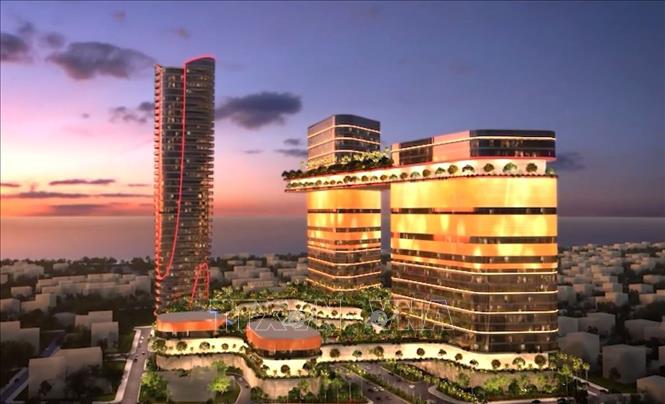 Mô hình khu trung tâm kinh doanh gắn với biểu tượng tài chính của thành phố Đà Nẵng. Ảnh: TTXVN phát
