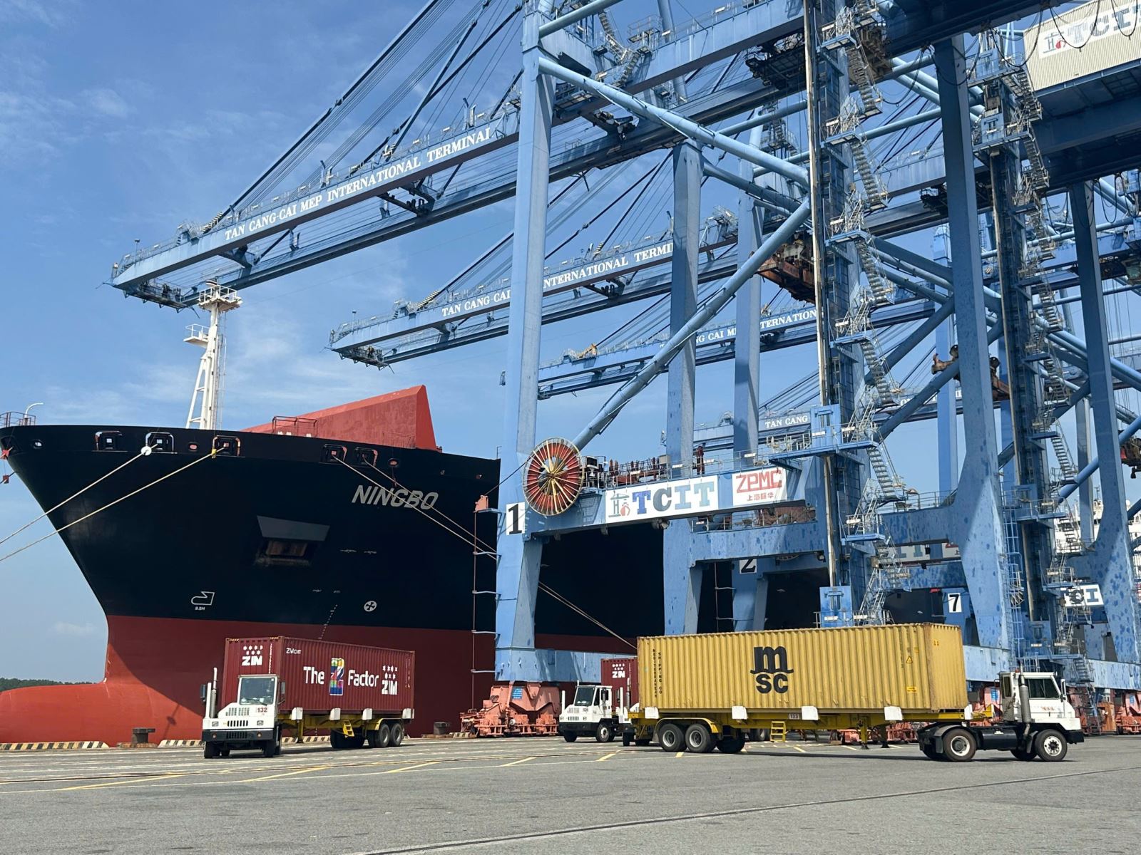 Tàu NINGBO thuộc tuyến ZSL/PELICAN, khai thác bởi ZIM và MSC, cập cảng TCIT, kết nối Việt Nam với vùng Vịnh Hoa Kỳ.