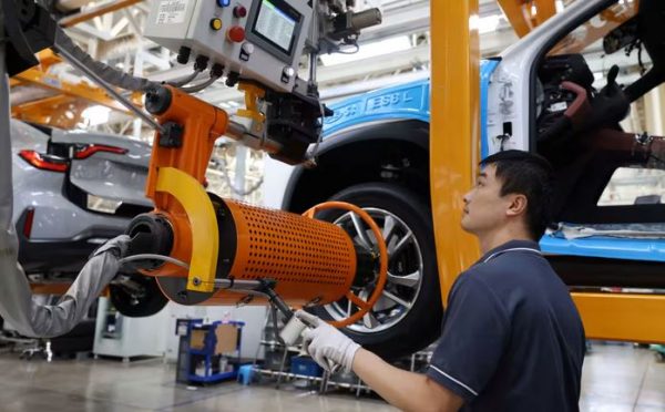 Nhân viên kỹ thuật làm việc ở một dây chuyền lắp ráp xe điện của hãng Nio ở tỉnh An Huy, Trung Quốc. Ảnh: Reuters