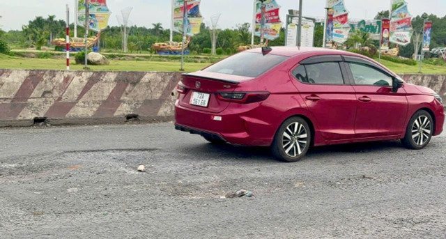 Mặt đường Quốc lộ 51 đoạn trước cổng Khu du lịch Sơn Tiên thường xuyên xuất hiện ổ gà mặc dù được dặm vá liên tục