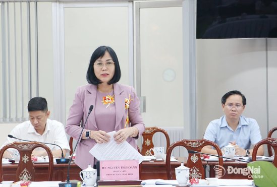 Tỉnh ủy viên, Phó Chủ tịch UBND tỉnh Đồng Nai Nguyễn Thị Hoàng phát biểu tại phiên họp. Ảnh: Phạm Tùng