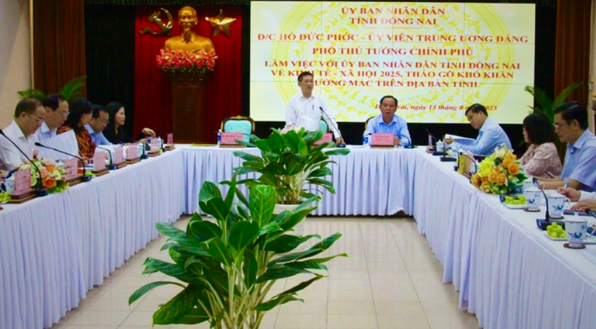 Sáng 15-8, Phó Thủ tướng Chính phủ Hồ Đức Phớc cùng đoàn công tác của Chính phủ làm việc với lãnh đạo tỉnh Đồng Nai về tình hình phát triển kinh tế - xã hội 2025 và tháo gỡ các khó khăn vướng mắc.