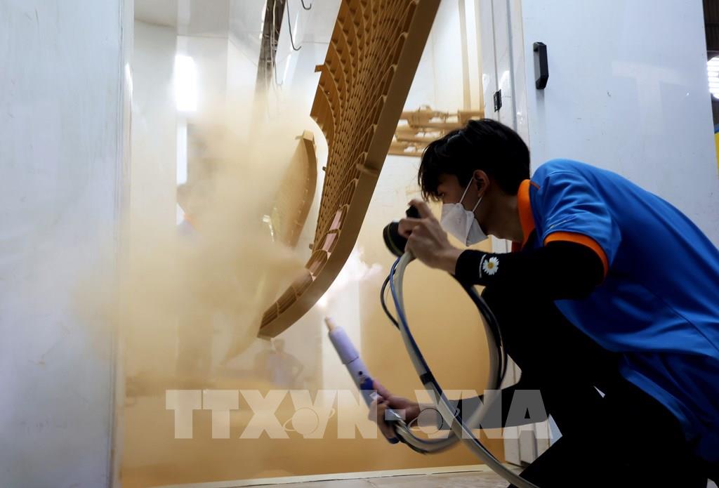 Sơn tĩnh điện tại khu công nghiệp Tân Phú Trung. Ảnh: Hồng Đạt - TTXVN