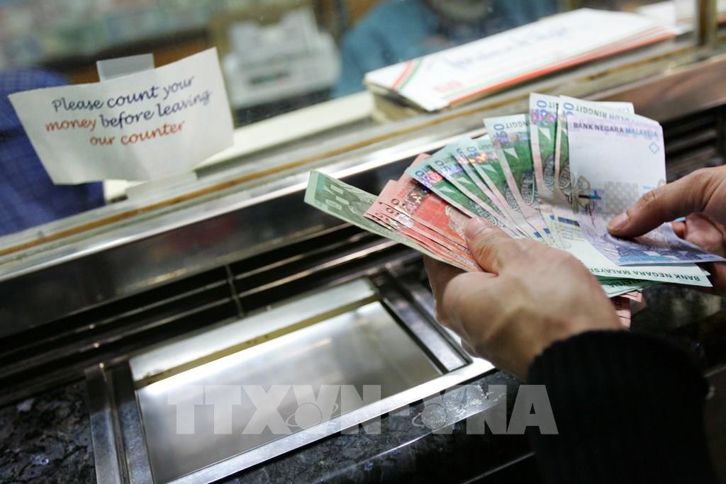 Kiểm tiền ringgit của Malaysia tại một quầy giao dịch tiền tệ ở Kuala Lumpur. Ảnh: AFP/ TTXVN
