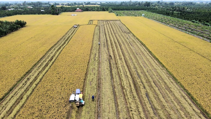 Nông dân vùng đồng bằng sông Cửu Long thu hoạch lúa. Ảnh: Trung Chánh