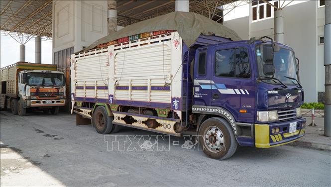 Phương tiện chở hàng hóa qua Cửa khẩu quốc tế Thường Phước (xã Thường Thước, tỉnh Đồng Tháp).