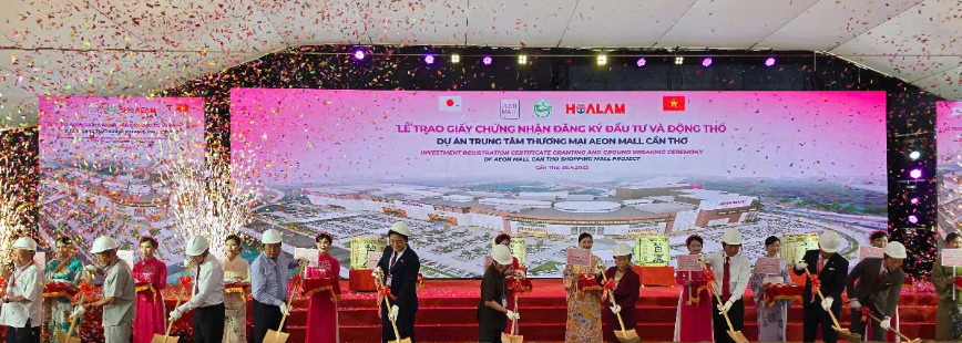 Ngày 26/4, UBND TP Cần Thơ, Tập đoàn Hoa Lâm và Aeon Mall Việt Nam phối hợp tổ chức Lễ trao Giấy chứng nhận đăng ký đầu tư và động thổ dự án Trung tâm thương mại Aeon Mall Cần Thơ.