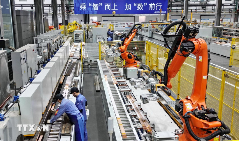 Công nhân làm việc tại nhà máy ở Cáp Nhĩ Tân, tỉnh Hắc Long Giang, Trung Quốc. (Ảnh: THX/TTXVN)
