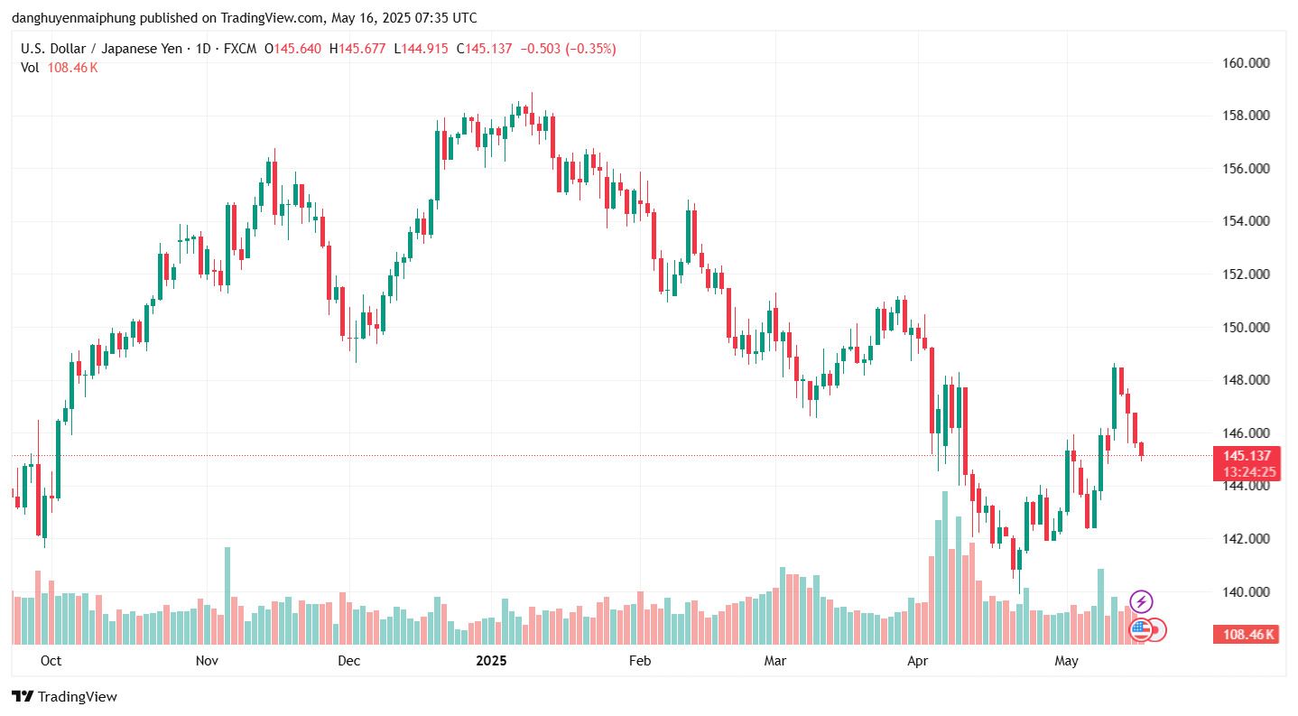 Theo ghi nhận của Lao Động, ngày 16.5, đồng Yên tăng giá, tỷ giá USD/JPY dao động quanh mốc 145.00. Đây là ngày thứ 4 trong chuỗi tăng giá của đồng tiền này.
