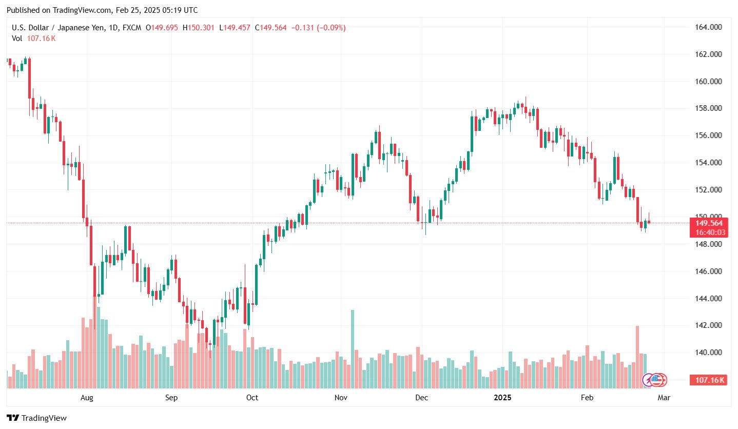 Tỷ giá đồng Yên ngày 25.2.2025. Ảnh: Tradingview.com