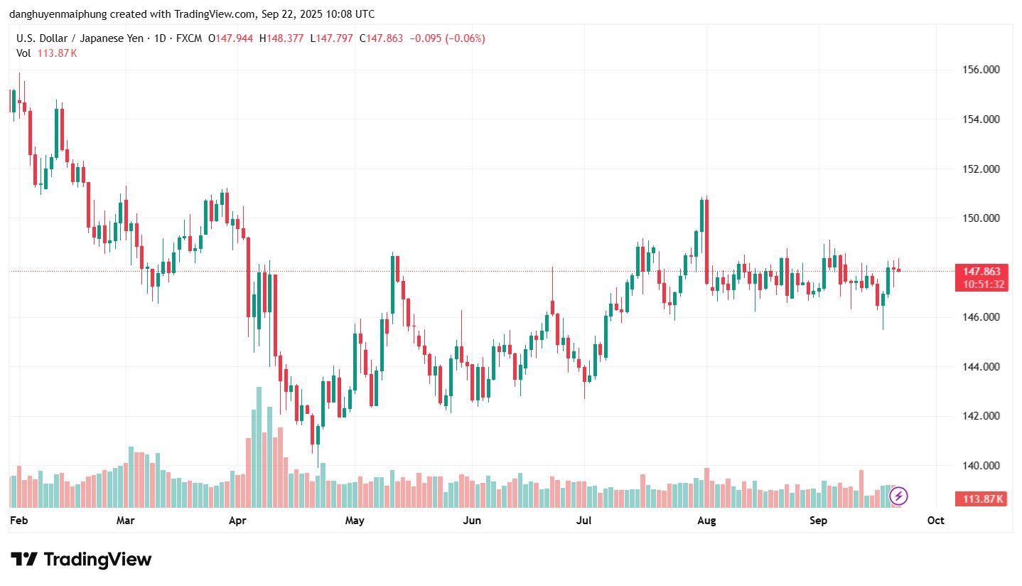 Tỷ giá đồng Yên cập nhật ngày 22.9.2025. Ảnh: Tradingview.com