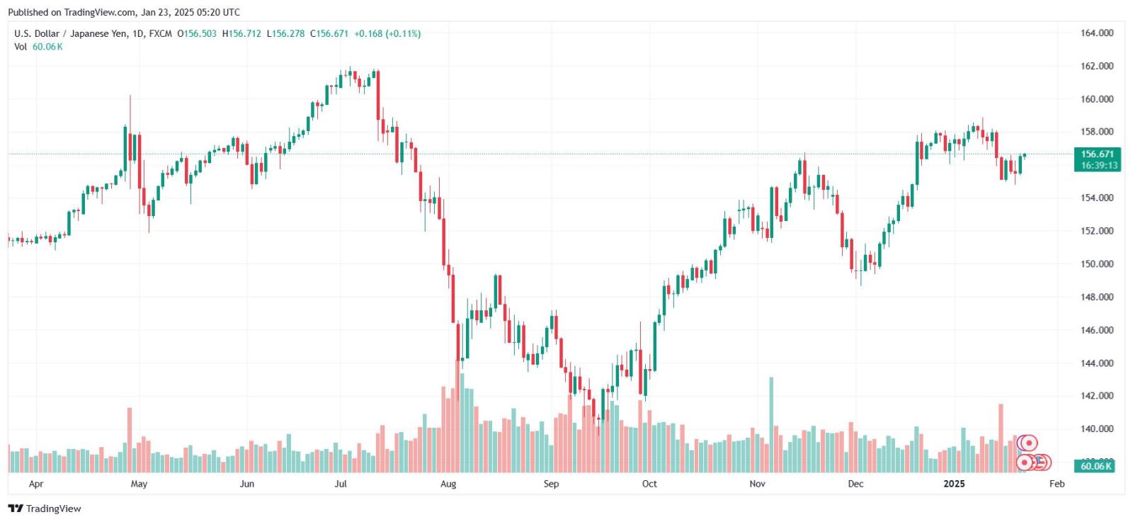 Tỷ giá đồng Yên USD/JPY ngày 23.1.2025. Ảnh: Tradingview.com.