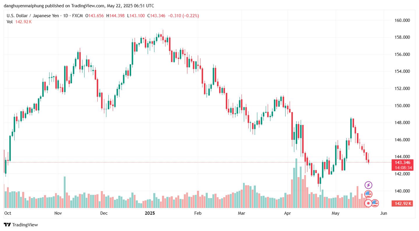 Tỷ giá đồng Yên cập nhật ngày 22.05.2025. Ảnh: Tradingview.com