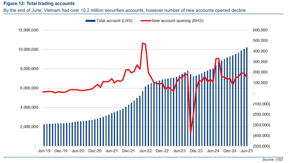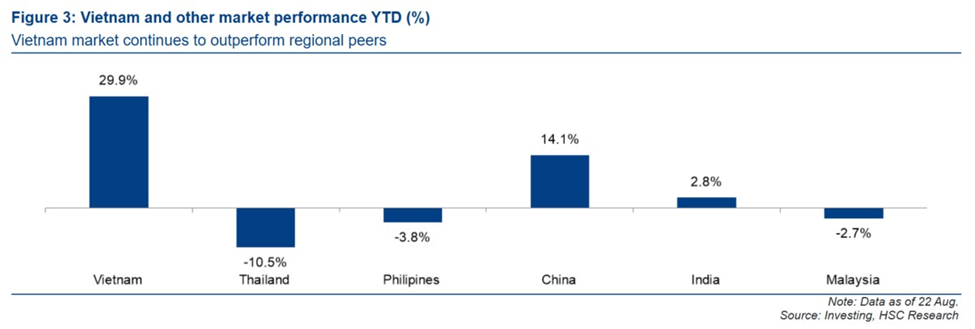 Thị trường chứng khoán Việt Nam, với đại diện là VN-Index, đã đạt mức tăng trưởng ấn tượng gần +30% tính từ đầu năm đến nay, vượt trội hơn hẳn so với các thị trường cùng khu vực. Giá trị giao dịch trung bình hàng ngày cũng tăng mạnh, đưa TTCK đạt mức cao kỷ lục mới trong lịch sử.