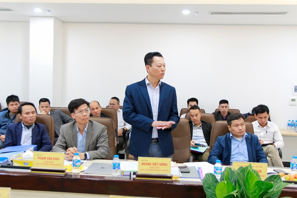 Đại diện Tập đoàn Hateco báo cáo tại cuộc họp. (Ảnh: Ngọc Hà)