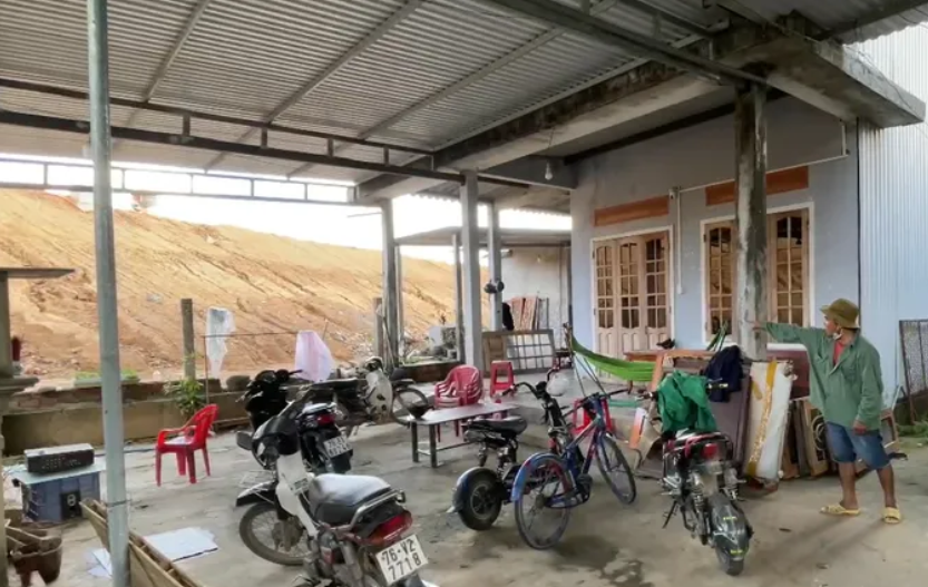 Gia đình anh Phạm Tốt (xã Nghĩa Giang, tỉnh Quảng Ngãi) có nhà ở nằm trong hành lang bảo vệ an toàn của dự án đường cao tốc Quảng Ngãi – Hoài Nhơn. Trong quá trình thi công, các nhà thầu đã lắp đặt rào chắn và đắp đất cao hơn nền nhà của anh Tốt hơn 10m so với hiện trạng ban đầu. Chỉ cần một cơn mưa, đất trên cao tốc trôi xuống nền nhà, biến sân trước thành bãi bùn lầy lội, khiến sinh hoạt bị đảo lộn.