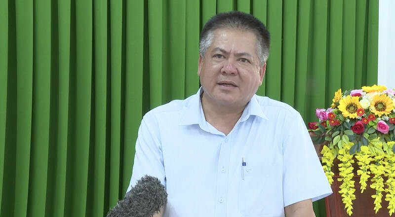 Ông Lâm Hoàng Vũ - Chủ đầu tư xây dựng hạ tầng hồ chứa nước ngọt tỉnh Trà Vinh thông tin về tiến độ xây dựng dự án. Ảnh: Hoàng Lộc