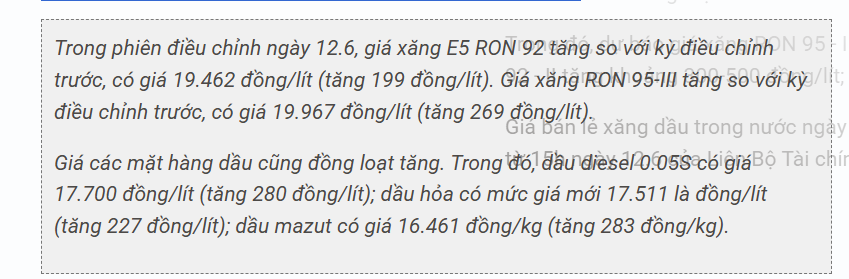 Trong đó, dự báo giá xăng RON 95 - III tăng khoảng 400-600 đồng/lít; xăng E5 RON 92 - II tăng khoảng 300-500 đồng/lít; dầu Diesel tăng khoảng 350-550 đồng/lít.