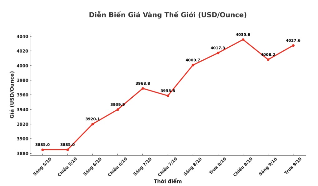 Diễn biến giá vàng thế giới những phiên giao dịch gần đây. Biểu đồ: Khương Duy