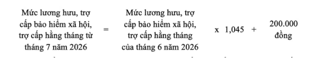Điều chỉnh tăng thêm 4,5% và 200.000 đồng/tháng trên mức lương hưu, trợ cấp bảo hiểm xã hội và trợ cấp hằng tháng của tháng 6/2026 đối với các đối tượng quy định: