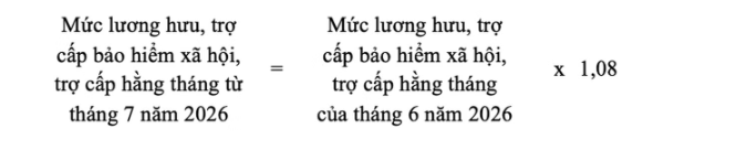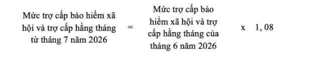 Điều chỉnh tăng thêm 8% trên mức trợ cấp bảo hiểm xã hội và trợ cấp hằng tháng của tháng 6/2026 đối với các đối tượng quy định: