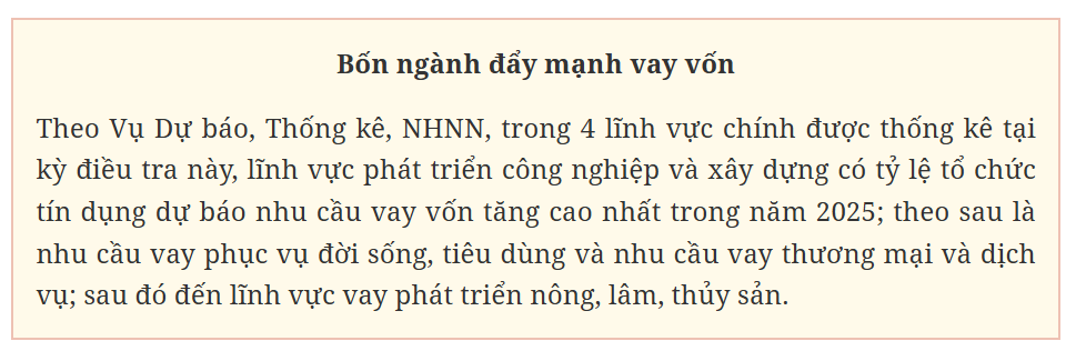 Bên cạnh các nhân tố trên, nhân tố cải tiến sản phẩm cho vay, điều kiện và thủ tục cho vay của tổ chức tín dụng được dự báo tác động nhiều đến sự gia tăng nhu cầu vay vốn của nhóm khách hàng cá nhân trong 6 tháng đầu năm và cả năm 2025.