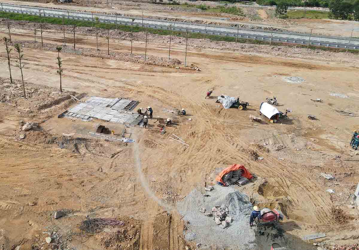 Việc thi công được tập trung san lấp mặt bằng, làm đường nội bộ, trạm tiếp nhiên liệu, bể chứa nước, trồng cây xanh...