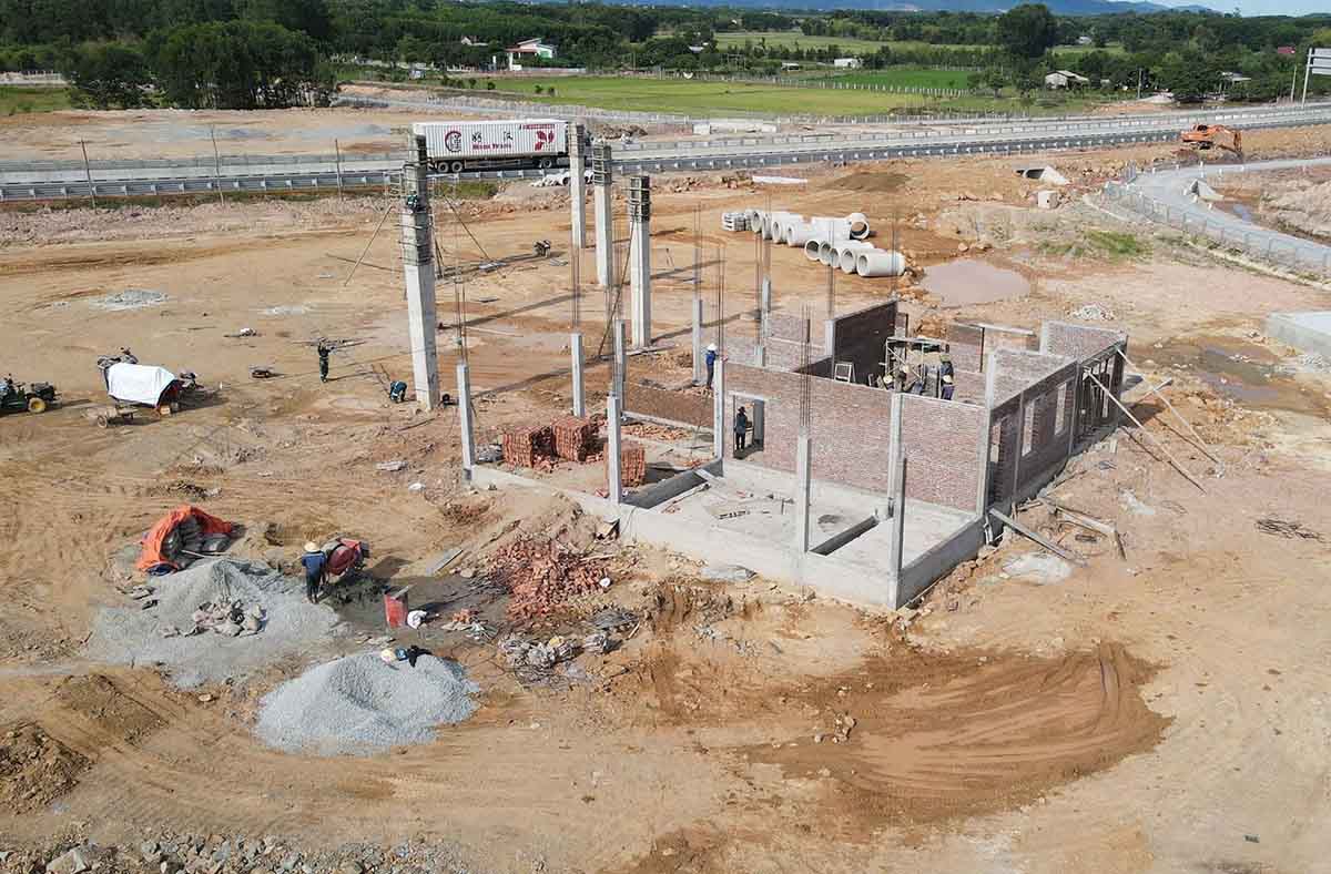 Trạm dừng nghỉ trên cao tốc đoạn Hàm Nghi - Vũng Áng đang được tập trung thi công. Ảnh: Trần Tuấn