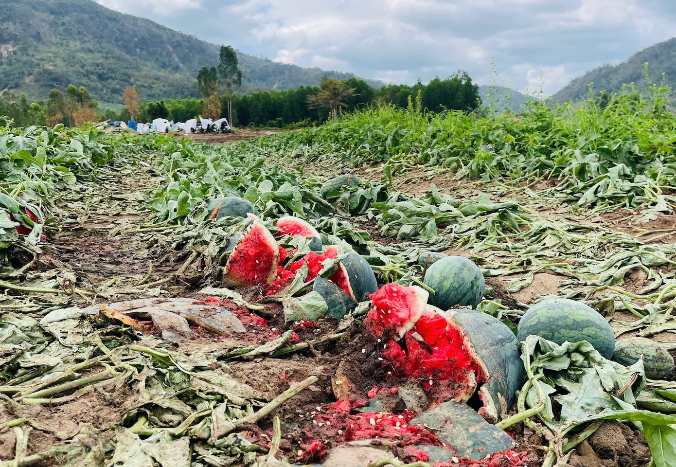 “Gia đình tôi năm nay đầu tư 78 sào dưa hấu với hơn 680 triệu đồng, giờ phải bán cắt lỗ mỗi sào chỉ với giá 2,5 triệu đồng. Sau khi bán, gia đình chỉ thu về hơn 180 triệu đồng, lỗ gần nửa tỷ đồng”, chị Phương rưng rưng và cho biết thời điểm này lỗ cũng phải bán, nếu không dưa sẽ hỏng. Vì thế, gia đình đành bán rẻ để thương lái vào hái, rồi thu dọn lán trại về nhà.