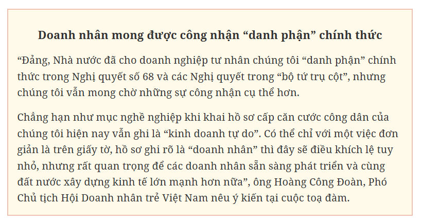Nghị quyết số 68-NQ/TW đã khẳng định vai trò quan trọng của kinh tế tư nhân. Đây là dấu mốc chính trị quan trọng, thể hiện sự nhìn nhận rõ hơn vai trò của kinh tế tư nhân trong chiến lược phát triển đất nước. Tuy nhiên, để khu vực này thực sự phát triển như kỳ vọng, sẽ cần nhiều hành động cụ thể, quyết liệt được triển khai.