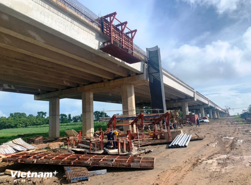 Nhà thầu thi công một hạng mục cầu cạn trên tuyến cao tốc Bắc-Nam phía Đông. (Ảnh: Việt Hùng/Vietnam+)