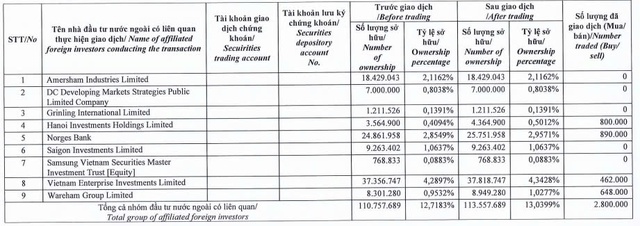 Cụ thể, quỹ Hanoi Investments Holdings Limited mua vào 800.000 cổ phiếu DXG, quỹ Norges Bank mua 890.000 cổ phiếu, quỹ Vietnam Enterprise Investments Limited mua 462.000 cổ phiếu và quỹ Wareham Group Limited mua 648.000 cổ phiếu.