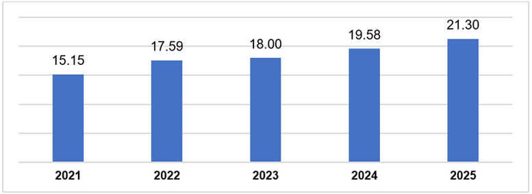 Vốn đầu tư trực tiếp nước ngoài thực hiện mười tháng các năm 2021-2025 (tỷ USD). Nguồn: Cục Thống kê, Bộ Tài chính.