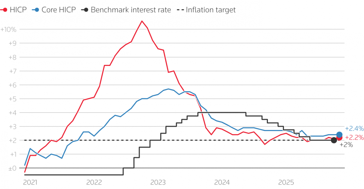 ECB đã duy trì lãi suất tiền gửi ở mức 2% kể từ tháng 6 và có khả năng sẽ tiếp tục như vậy tại cuộc họp chính sách diễn ra trong tuần tới.
