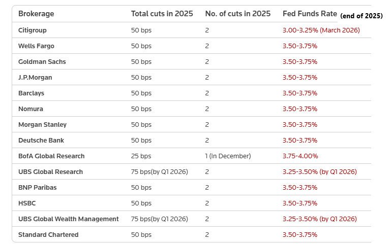 Trong khi toàn bộ các nhà môi giới còn lại đều dự báo Fed sẽ có thêm hai lần cắt giảm lãi suất 25 điểm cơ bản nữa tại hai cuộc họp cuối năm; thậm chí nhiều định chế còn tiên đoán, Fed sẽ cắt giảm lãi suất thêm một lần nữa trong quý 1 năm 2026.