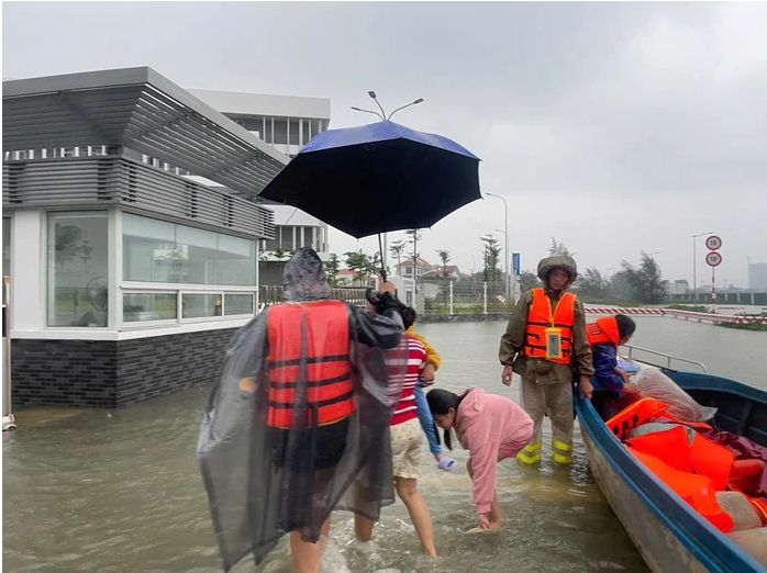 Bên cạnh đó tại Đà Nẵng, các cán bộ nhân viên của FPT đã trích quỹ và góp tiền mua nhu yếu phẩm, tự tay đóng gói hàng trăm phần quà cứu trợ ngay tại văn phòng FPT Complex. Khi nước lũ dâng cao khiến nhiều khu vực bị cô lập, các nhân viên này đã phối hợp với lực lượng chức năng chia nhỏ hàng hóa, buộc chặt từng kiện để trên drone và ca nô, mang những "chuyến bay của lòng nhân ái" tiếp tế cho bà con trong tâm lũ.