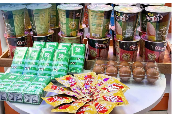 Mì tôm, trứng, sữa... được nhà trường chuẩn bị và đăng thông báo cho người dân biết từ trước cơn lũ
