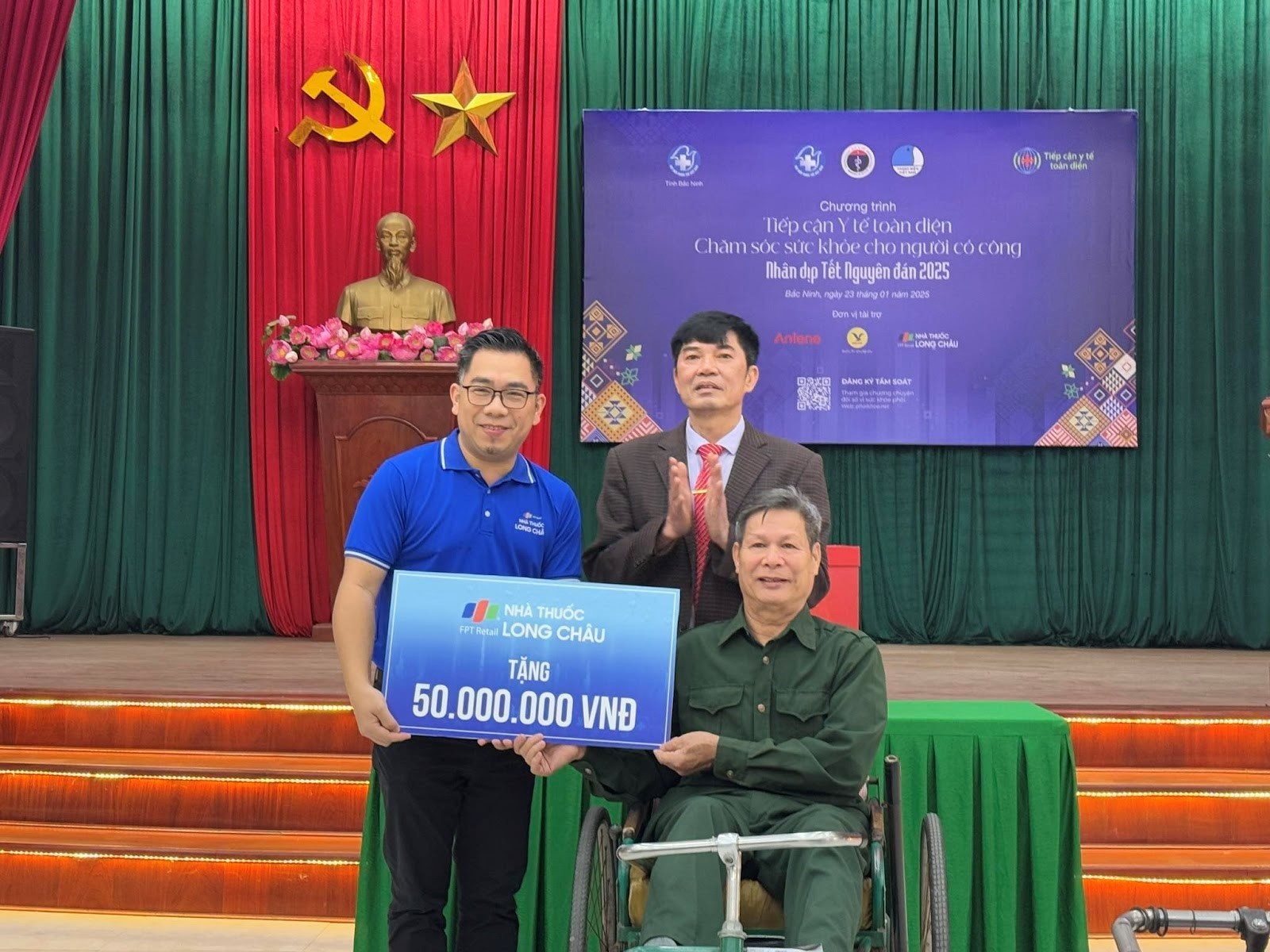 Sáng ngày 23/01/2025, Đoàn công tác của Bộ Y tế do GS.TS Trần Văn Thuấn, Thứ trưởng Bộ Y tế, Chủ tịch Hội đồng Y khoa Quốc gia làm Trưởng đoàn, đại diện Hệ thống nhà thuốc và trung tâm tiêm chủng FPT Long Châu cùng Trung ương Hội Thầy thuốc trẻ Việt Nam đã đến thăm chúc Tết thương, bệnh binh tại Trung tâm Điều dưỡng thương binh Thuận Thành nhân dịp Xuân Ất Tỵ 2025.