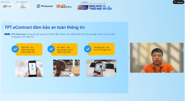 Ông Nguyễn Tá Anh - Phó Giám đốc Trung tâm Dịch vụ điện tử, FPT IS nhấn mạnh FPT.eContract tuân thủ Nghị định 13