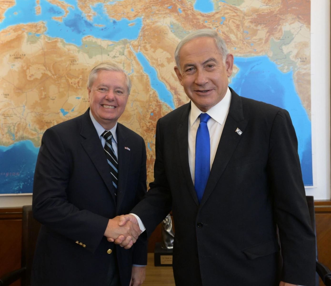 Thượng nghị sĩ Mỹ Lindsey Graham (bên trái) bắt tay cùng Thủ tướng Israel Benjamin Netanyahu.