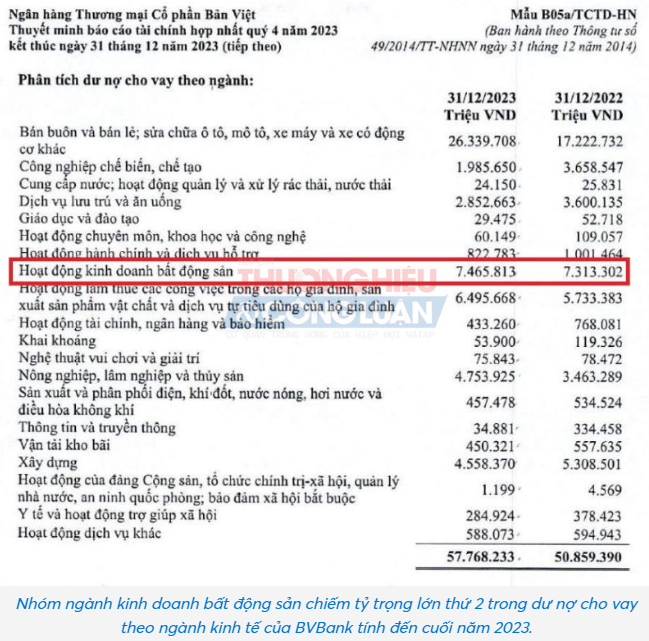 Kết quả kinh doanh trong quý IV cũng như năm 2023 không mấy khả quan khi lợi nhuận giảm 84%, tỷ lệ nợ xấu vượt mức trần quy định mà Ngân hàng Nhà nước đề ra là 3% thế nhưng thương hiệu BVBank vẫn muốn phát hành lô trái phiếu trị giá 5.600 tỷ đồng trong thời gian tới. Bên cạnh đó, dự phòng rủi ro cho vay tín dụng của nhà băng này -801 tỷ đồng, điều này cho thấy khả năng phòng thủ của BVBank trước những rủi ro liên quan nợ xấu đang ở mức thấp. Ngoài ra, BVBank cũng đang “sở hữu” hơn 76.135,5 tỷ đồng bất động sản thế chấp cùng nhiều đối tác tín dụng bất động sản tính đến thời điểm 31/12/2023.