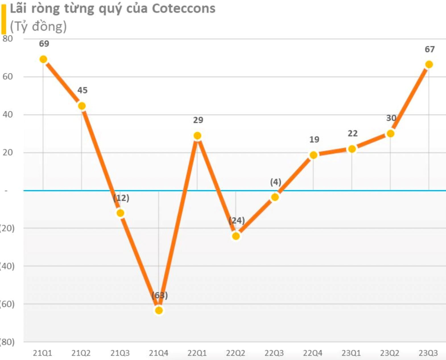 Quý 1 niên độ tài chính mới (từ ngày 1/7/2023 đến ngày 30/6/2024), Coteccons ghi nhận doanh thu thuần gần 4.124 tỷ đồng, tăng 32% so với cùng kỳ, chủ yếu đến từ hợp đồng xây dựng. Lợi nhuận sau thuế đạt gần 67 tỷ đồng, cải thiện mạng so với mức lỗ 3,5 tỷ đồng cùng kỳ năm trước và là mức lãi cao nhất 10 quý trong kỳ đầu tiên của niên độ tài chính mới.